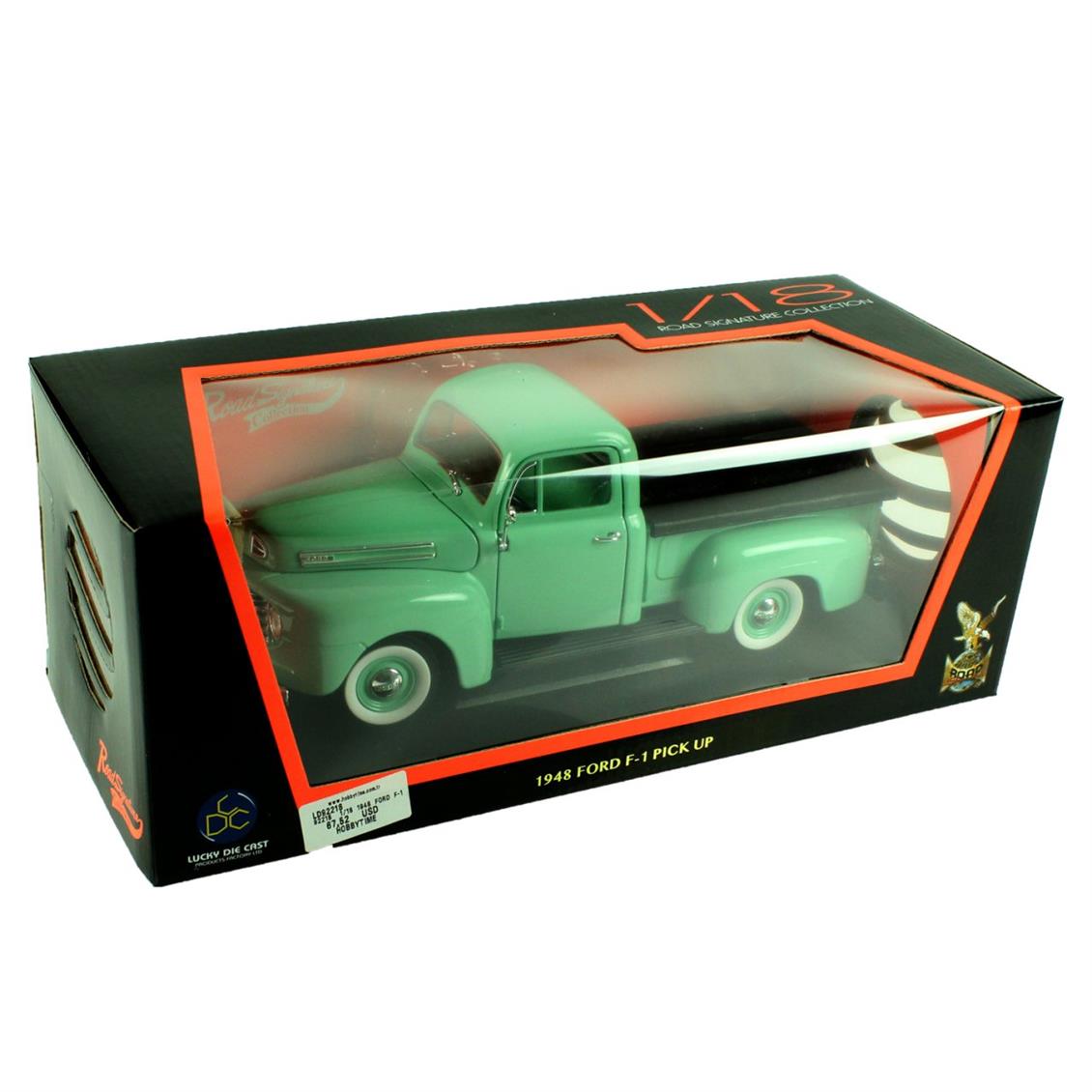 Road Signature 92218 1/18 Scale, 1948 Ford F-1 Pickup With Flatbed Cov, Green, Ready to Display Metal Car Model (RS92218G)