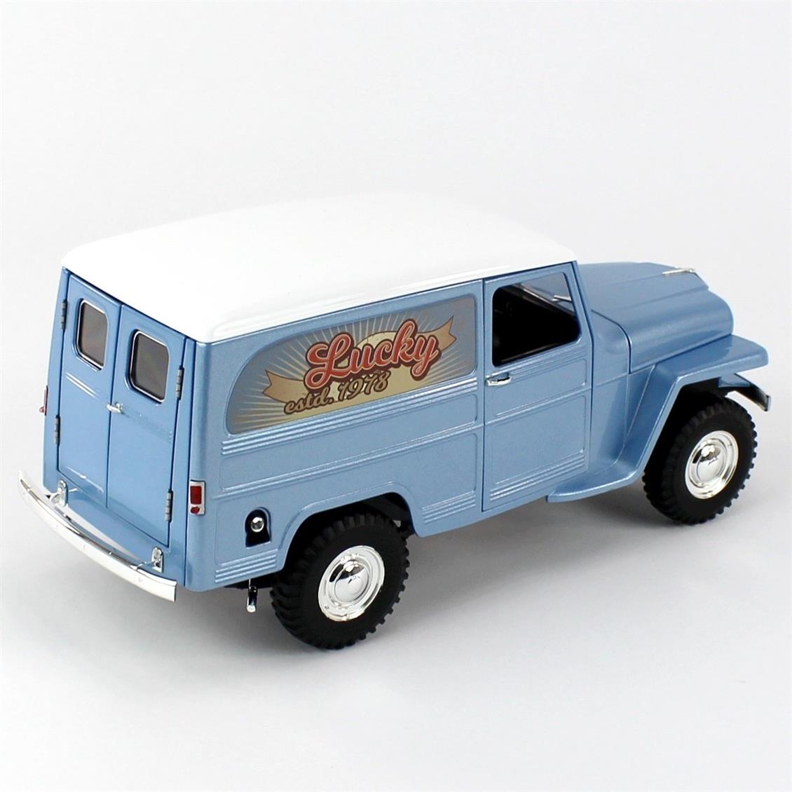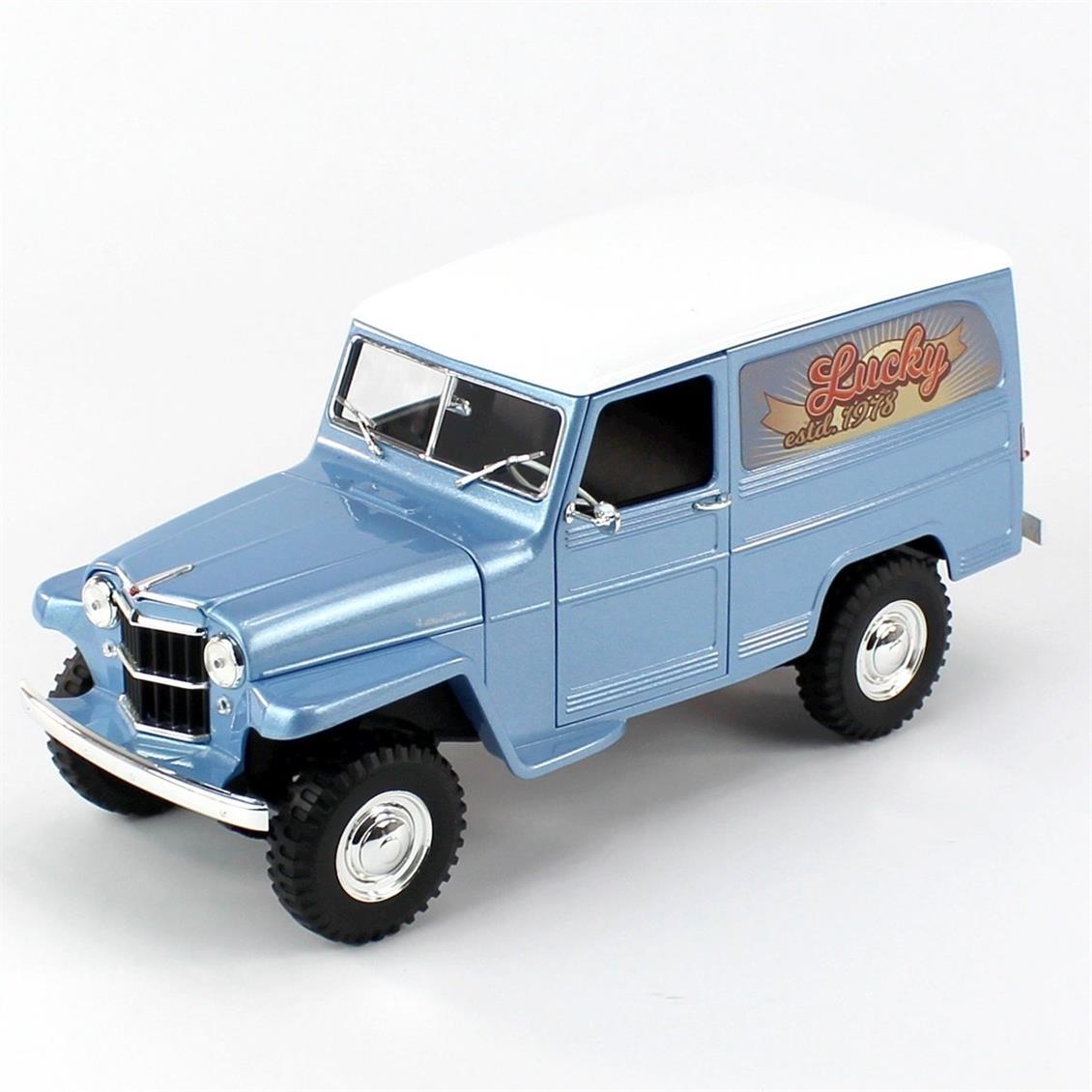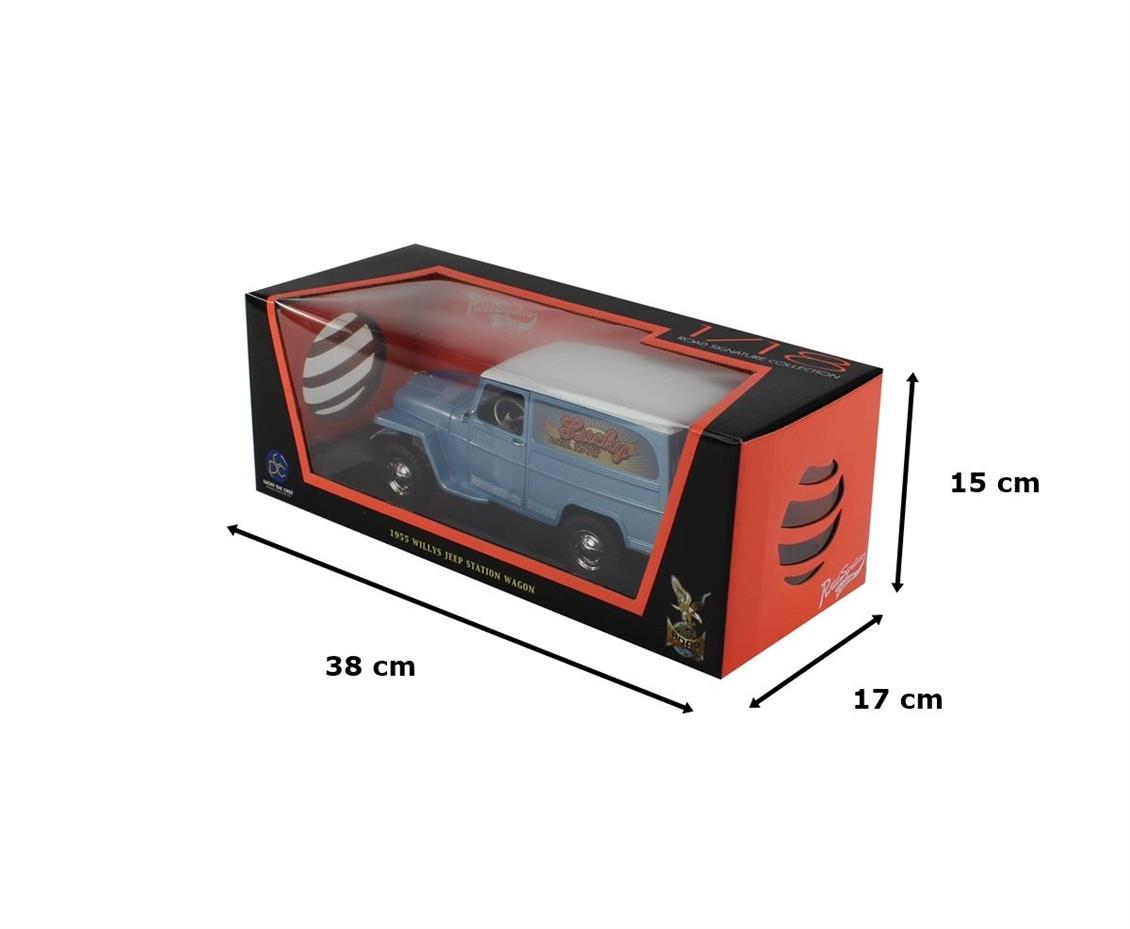 Road Signature 92858 1/18 1955 Willys Jeep Station Wagon, Blue, Metal Car Model Ready to Exhibit