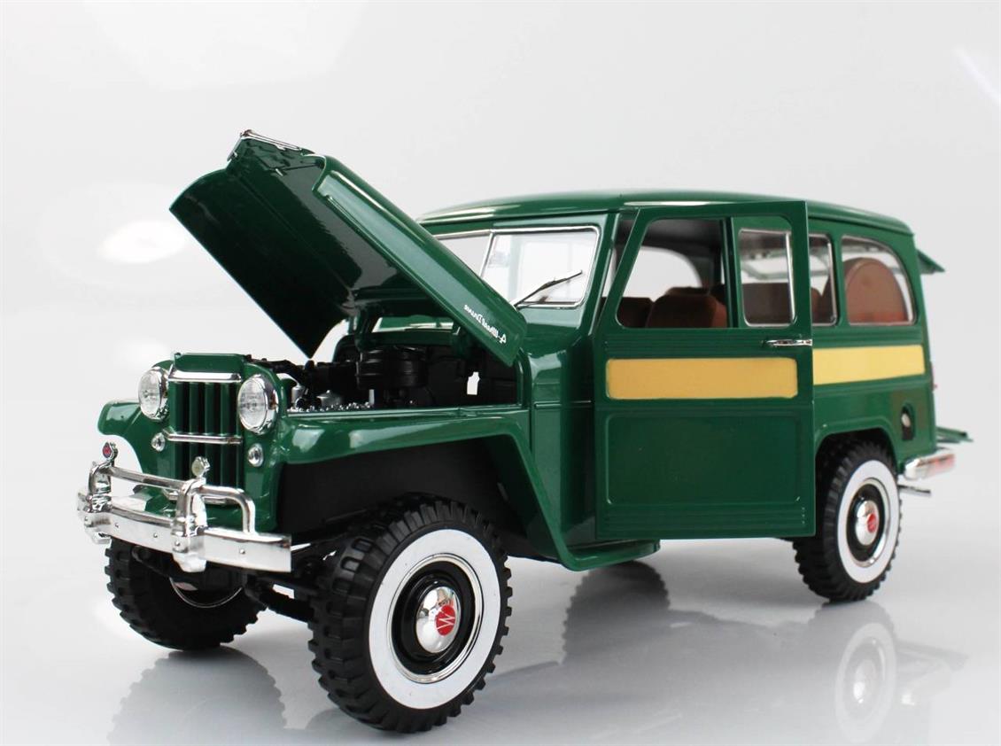 Road Signature 92858 1/18 Scale, 1955 Willys Jeep Station Wagon, Green, ready to exhibit metal car model