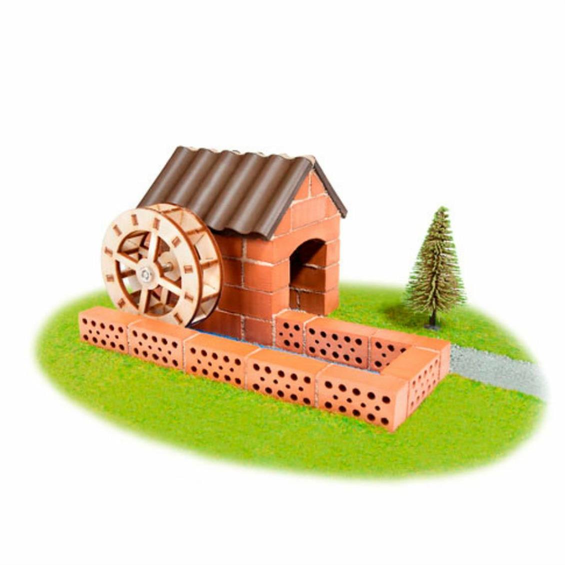 The water mill is a combination of stone and wood. The mill itself is made of brick and the water wheel is made of wood. The wheel is mounted to rotate. Everything required for construction is included in the scope of delivery: trowel, mortar, mortar bowl, bricks and detailed construction instructions. Playing with teifoc products improves fine motor skills as well as logical and spatial thinking. This product is suitable for children older than 6 years of age.