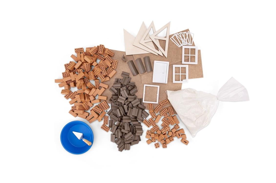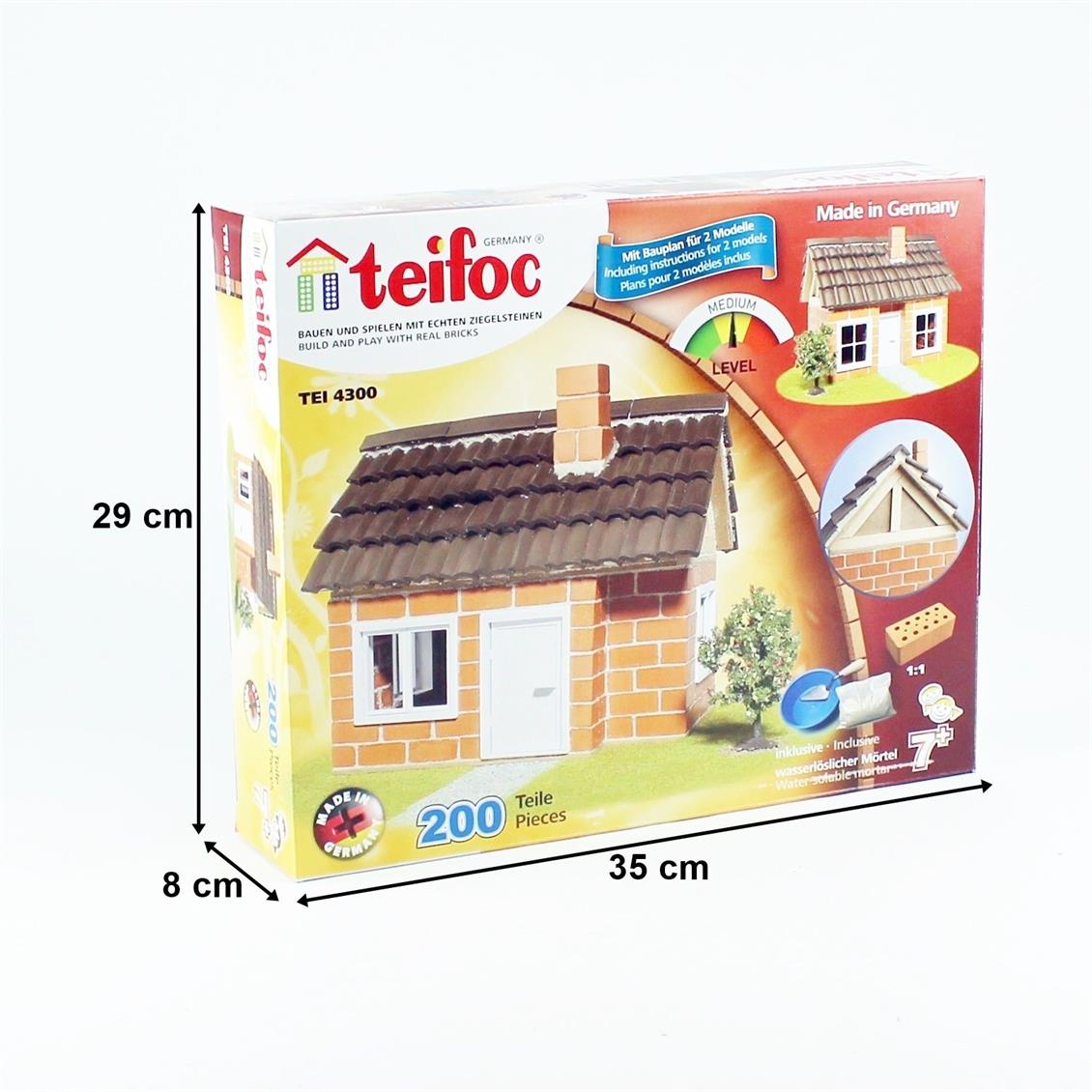 The stylish semi -wooden house has a beautiful roof made of separate tiles and a wooden roof beam with semi -wood design. The structure turned out to be relatively complex and therefore designed for more experienced wall masters. Each of the two building variants has a door that provides a high game value and three windows. Small architects and builders will find everything they need in our kits. Starting with detailed construction instructions, mortar bowl and masonry property until the building material and mortar. Playing with teifoc products improves fine motor skills as well as logical and spatial thinking. This product is recommended for children older than 7 years of age.