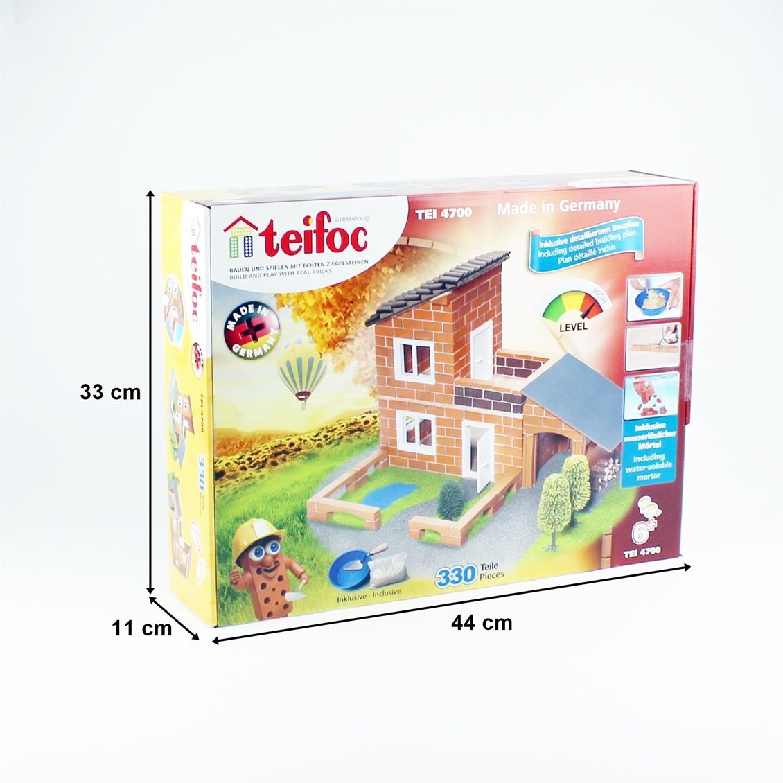 Small architects promising the future can build their own villas from this stone building set of more than 330 separate pieces. Since the back is open, this model can be played from the front and back, and this offers a lot of entertainment. Everything required for construction is included in the scope of delivery: wall goods, mortar, mortar bowl, bricks and detailed construction instructions. Playing with teifoc products improves fine motor skills as well as logical and spatial thinking. This product is suitable for children older than 6 years of age.