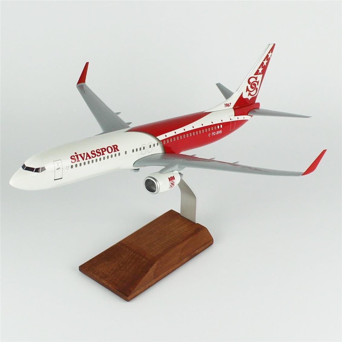 THY013 1/100 Scale, THY Sivas Sports B737-800 Passenger aircraft, ready to exhibit wooden stand model