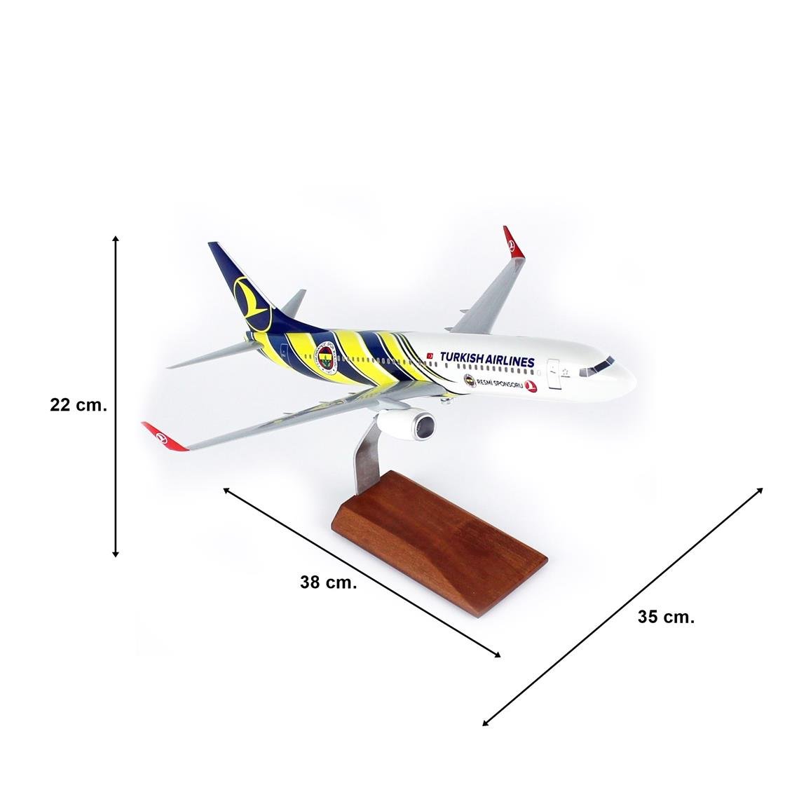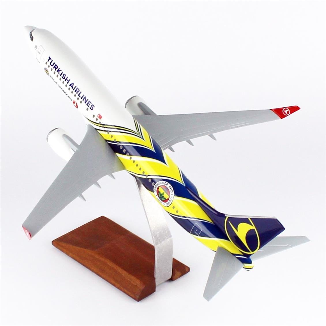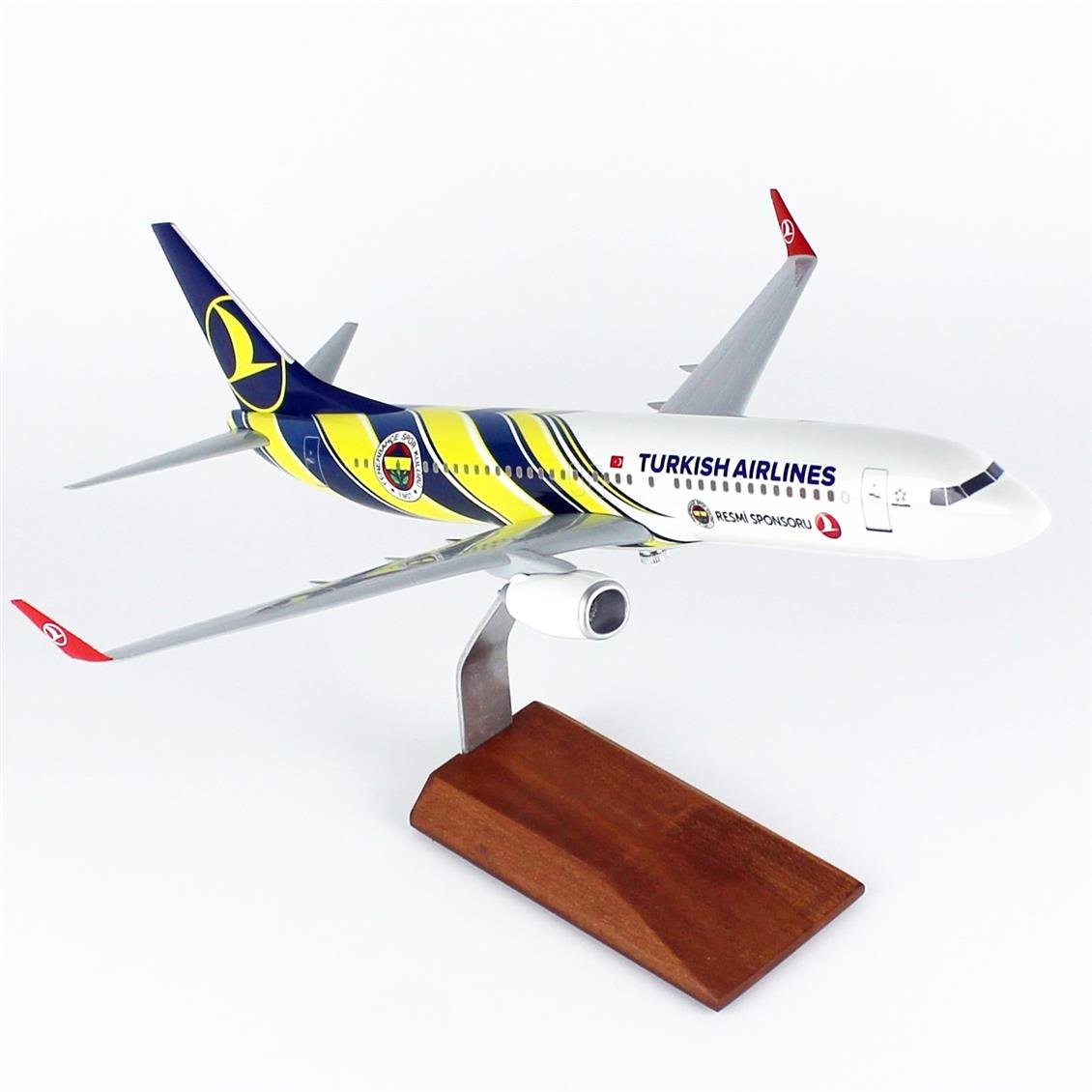 THY021 1/100 Scale, THY Fenerbahçe Sports Club Logo B737-800 Passenger aircraft, ready to exhibit wood stand with wooden stand
