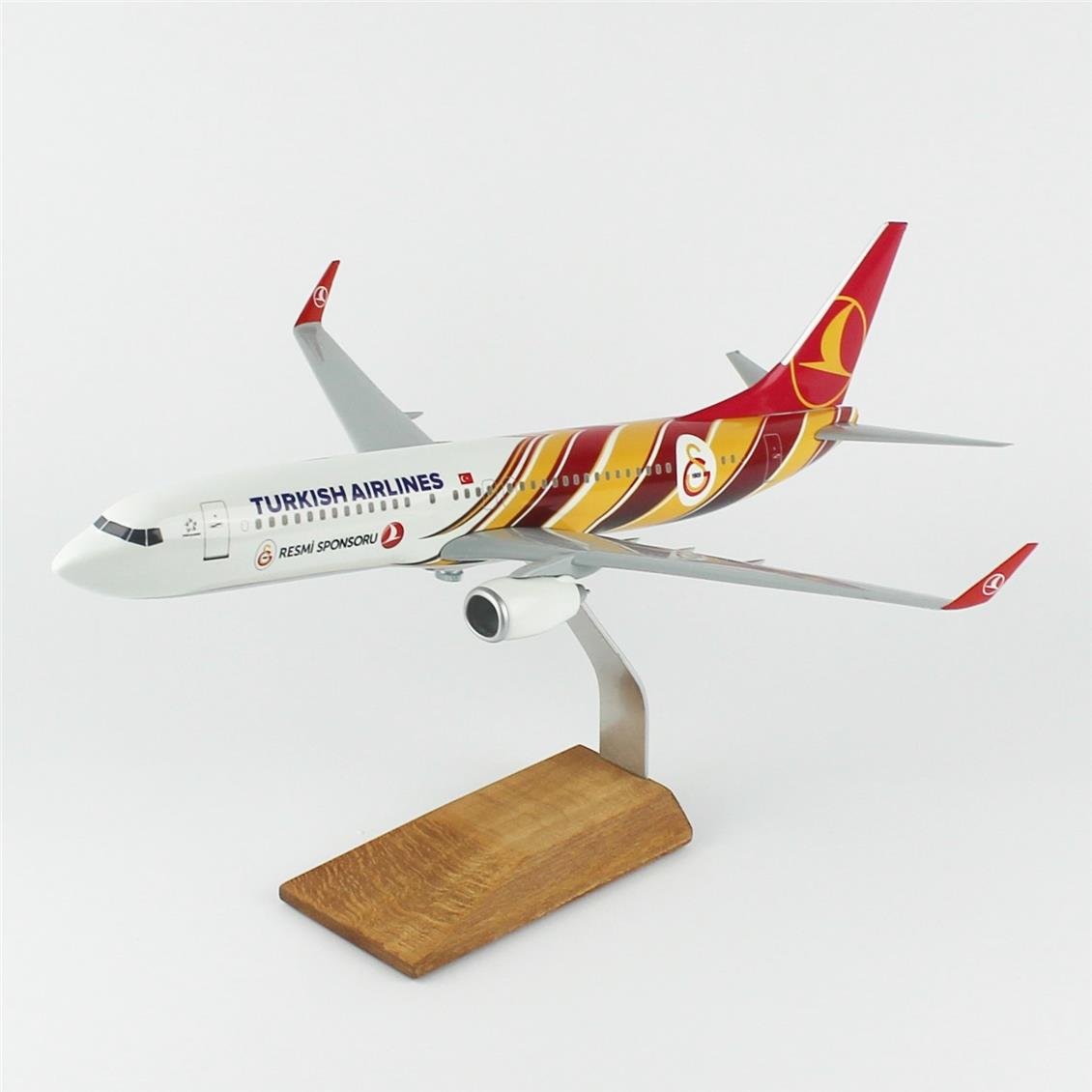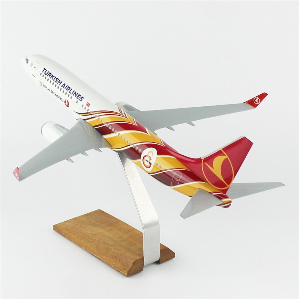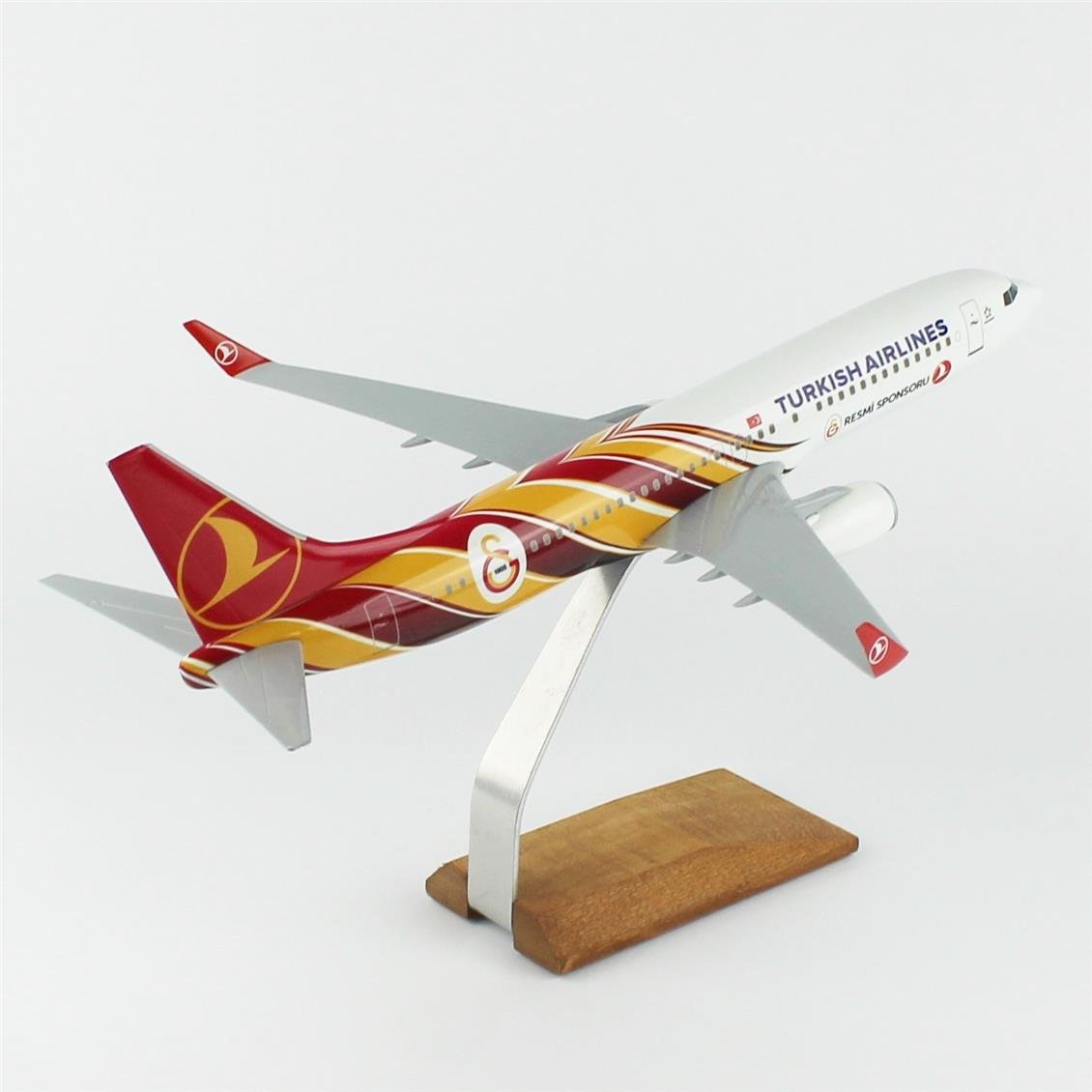 THY022 1/100 Scale, THY Galatasaray Sports Club B737-800 Passenger aircraft, ready to exhibit wooden stand model