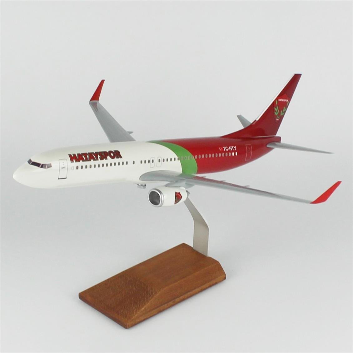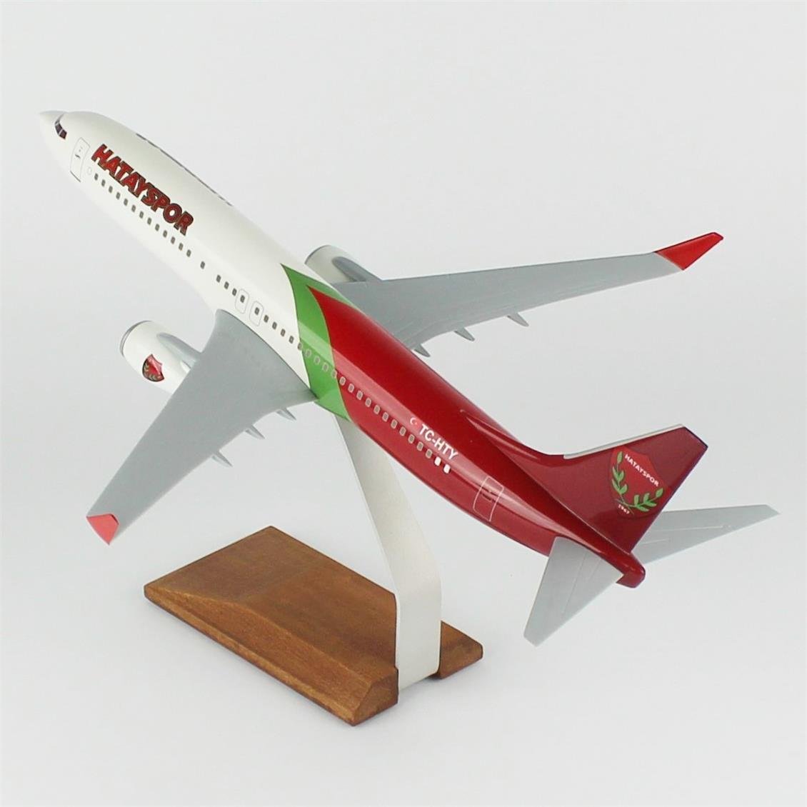 THY036 1/100 Scale, THY Hatay Sports Logo B737-800 Passenger aircraft, ready to exhibit wooden stand model