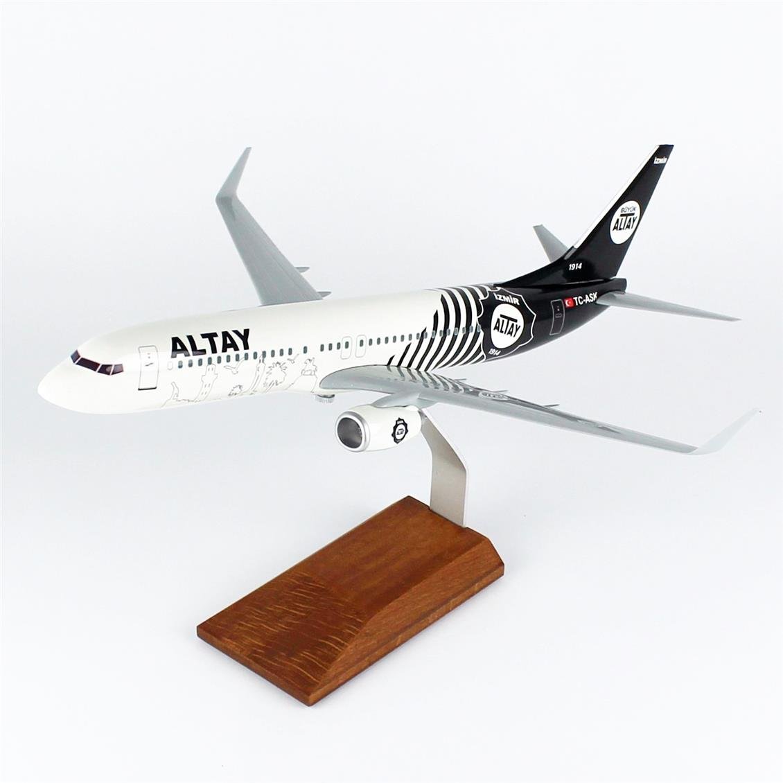 THY037 1/100 Scale, THY Altay Sports Logo B737-800 Passenger aircraft, ready to exhibit wooden stand model
