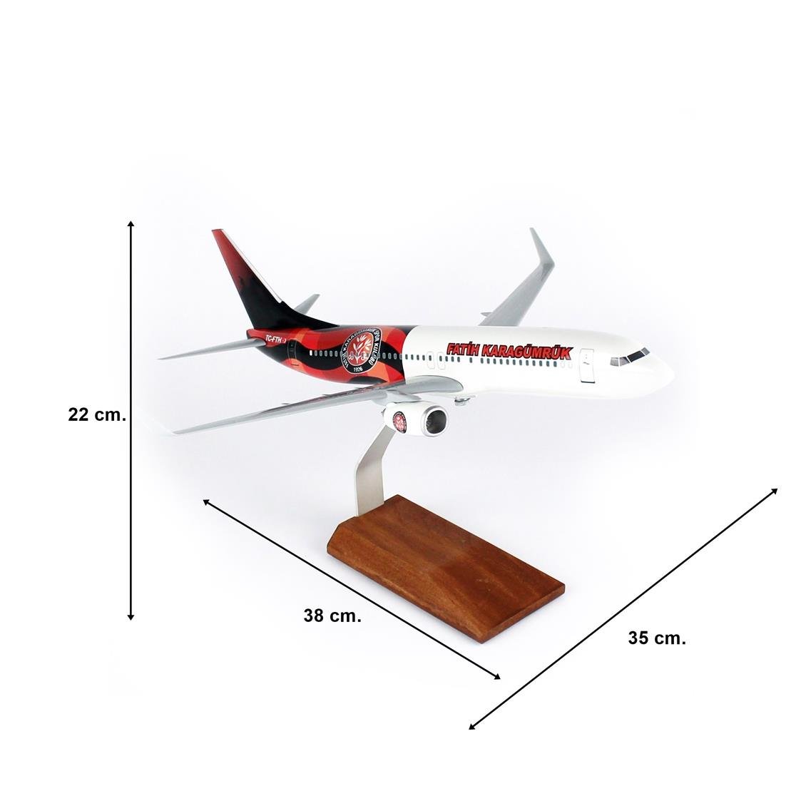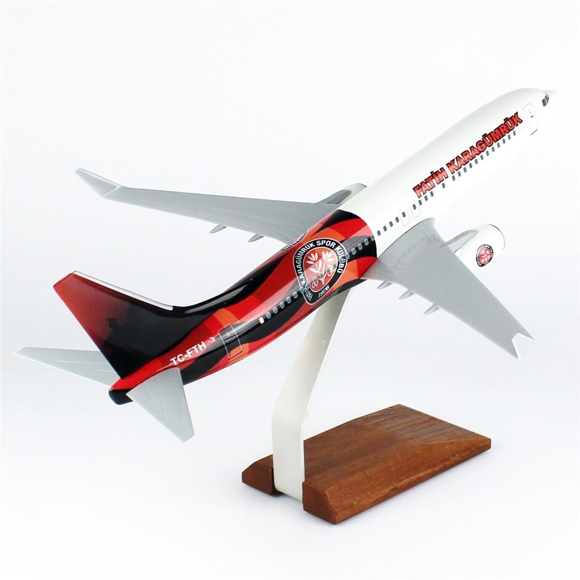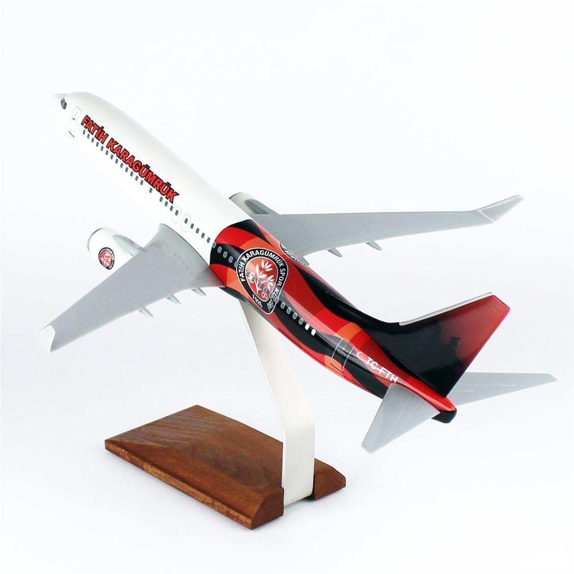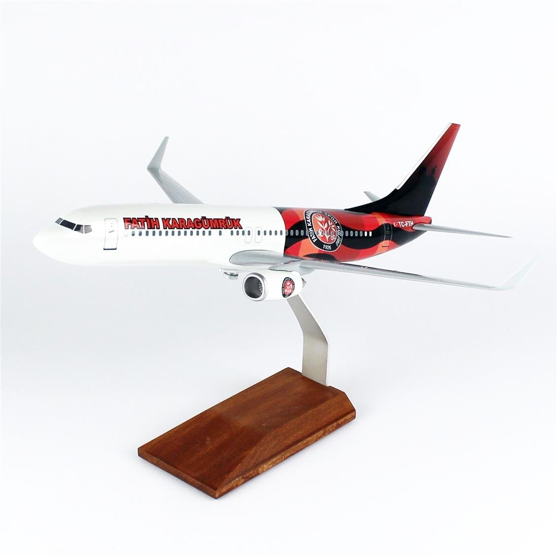 THY048 1/100 Scale, THY Fatih Karagümrük Sports B737-800 Passenger aircraft, ready to exhibit wooden stand model
