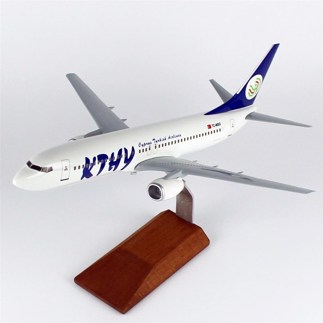 THY060 1/100 Scale, Cyprus Kthy B737-800 Passenger aircraft, ready to exhibit wooden stand model