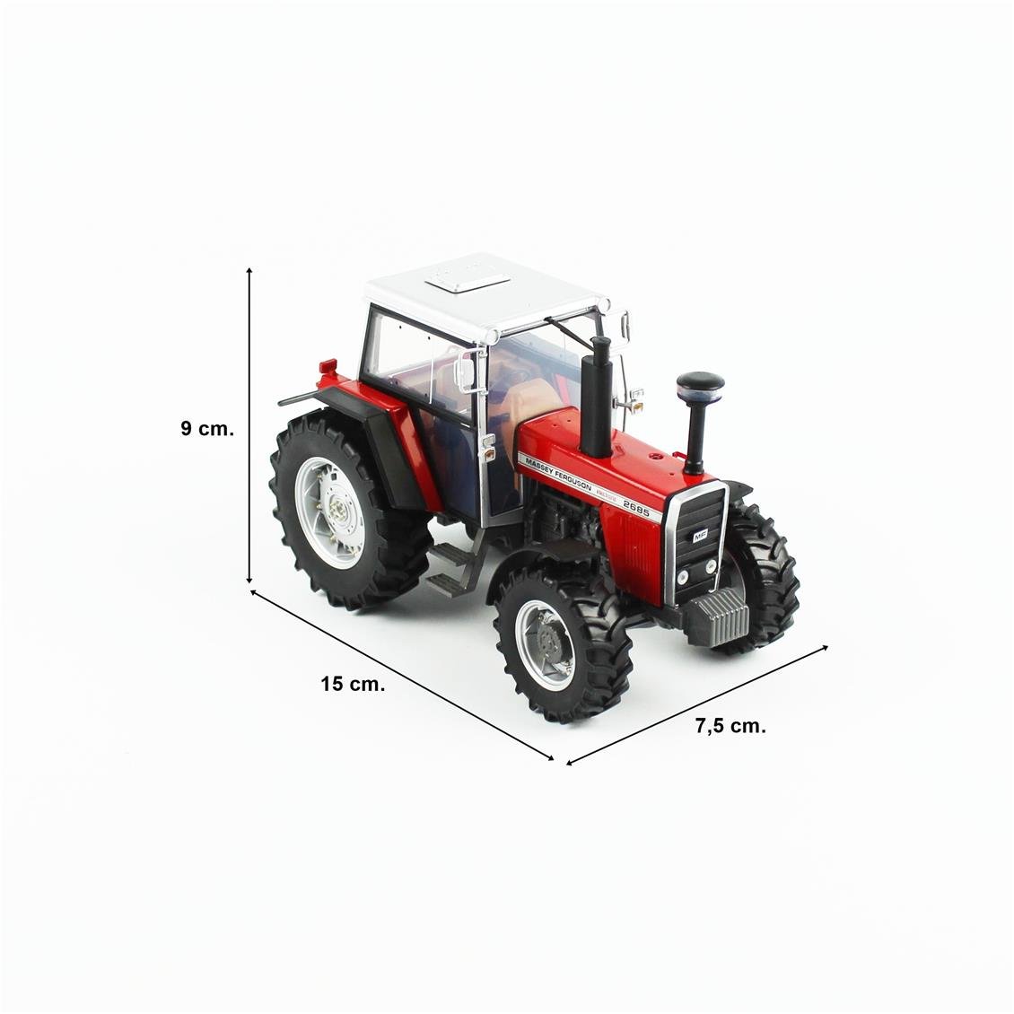 MFD Tractor UH6369 and 1/32 Massey Ferguson 2685, produced in a limited number, are introducing a piece of collection produced with fine workmanship. Produced with Press casting metal and distinguished plastic pieces, this vehicle offers remarkable details. The new rectangular Massey Ferguson grilled logo, ceiling window, air filter and wheels, a real replica. It has complex details such as cabin, instrument panel, arms, steering wheel, seat and floor. Functional wheels, rubber tires with processed details and wide fenders contribute to their realism. This model, which is completed with a realistic rear fitting, is a must for enthusiasts.