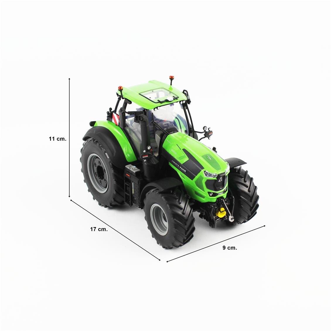 The Deutz-Fahr 8280 TTV tractor consists of 141 pieces and has 159 bumper printing masks. This is a brand new tool that contains all the features of the real model. The wheels are functional, the tractor has a realistic front and rear tip iron and the third point hook length can be adjusted. External mirrors and rear security panels can be folded. The completely glazed cabin reveals the detailed interior as in the original model: seat, steering wheel, pedals, armrest, instrument panel and side console. This is a 1:32-scale, high-quality casting collection piece: this new miniature will please all the fans of the Deutz-Fahr brand.