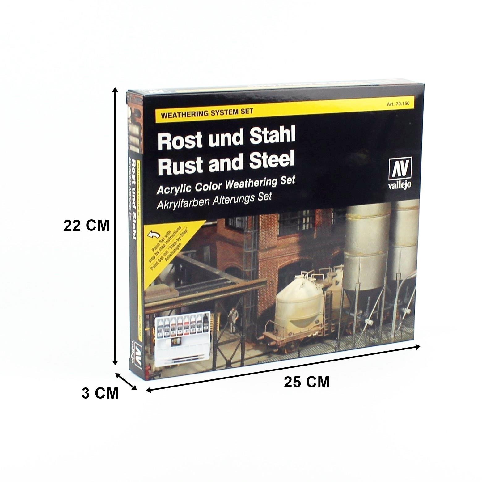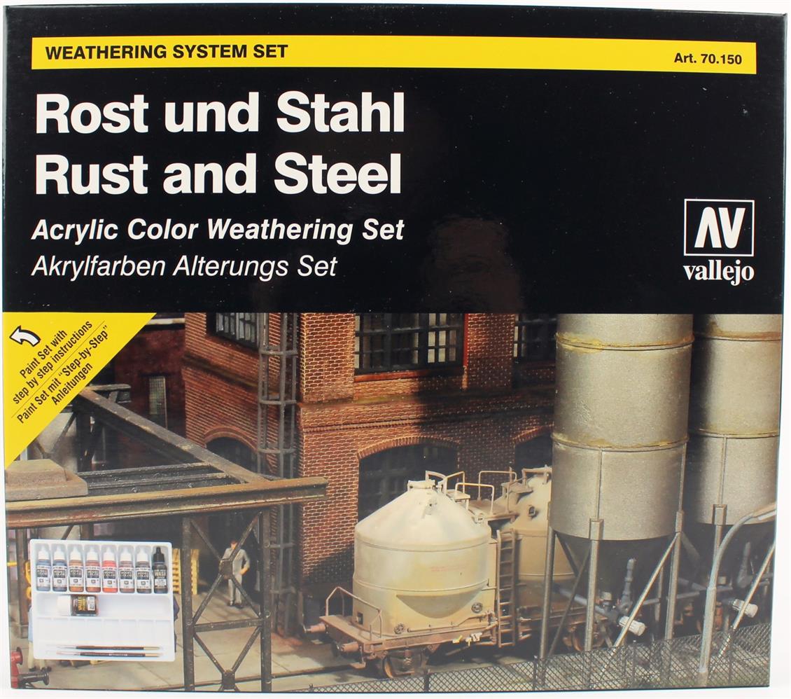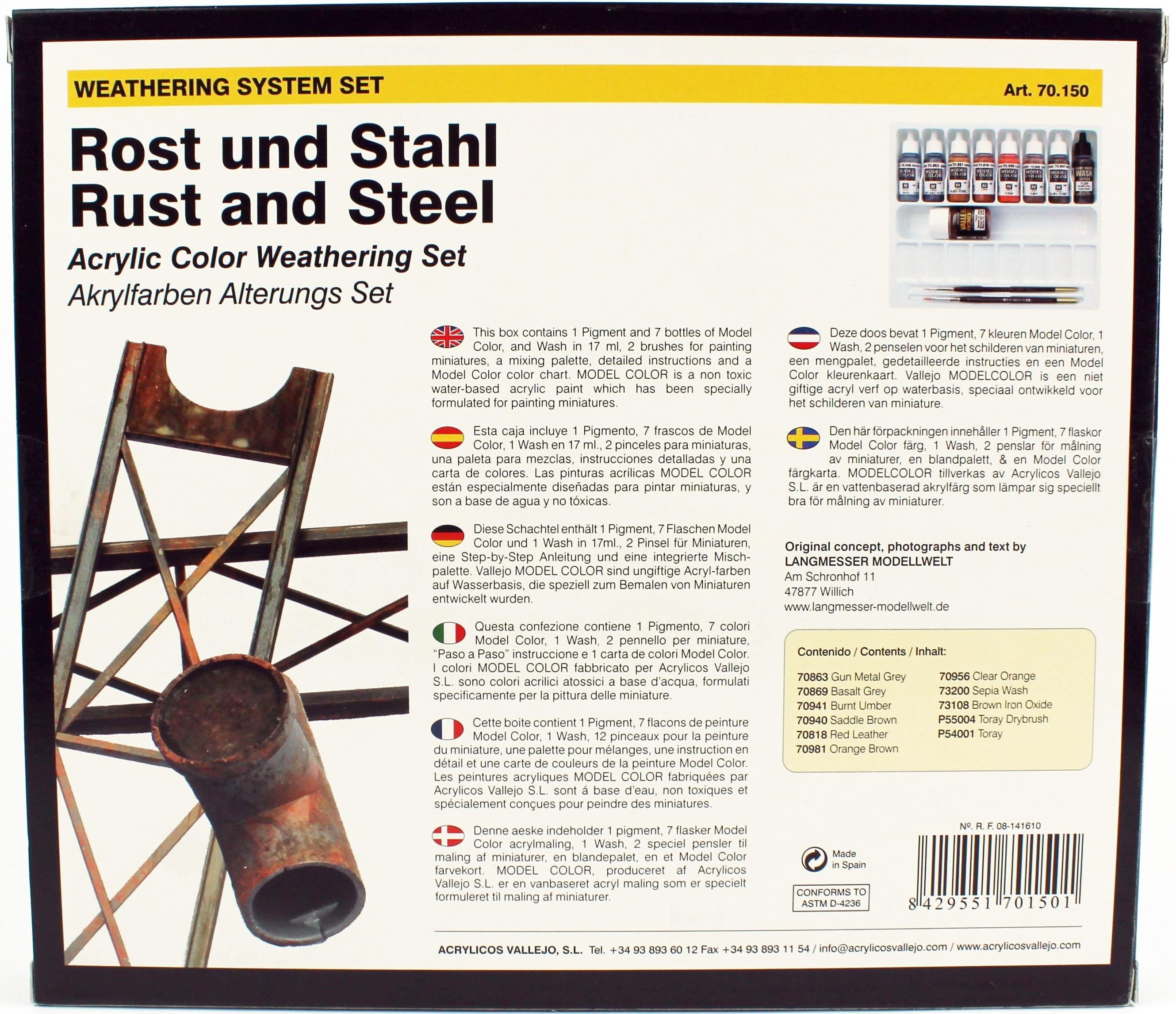Vallejo 70150 9x17 ml. Effect Set, Rust, Steel and 2 Brush, Model Color Series Model Painting Set