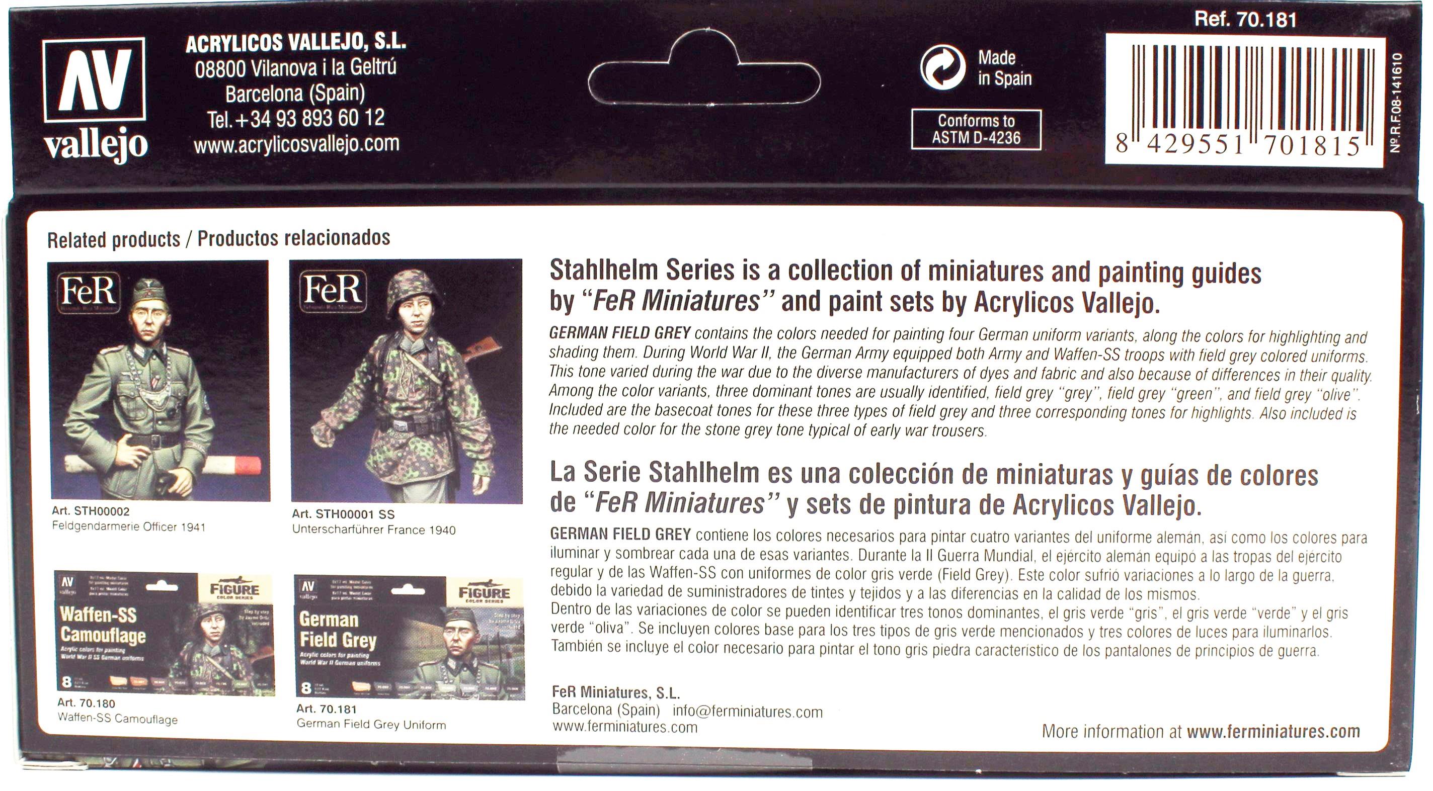 Vallejo 70181 8x17 ml. German Field Gray Uniform by Jaume Ortiz, Model Color Series Model Paint Set