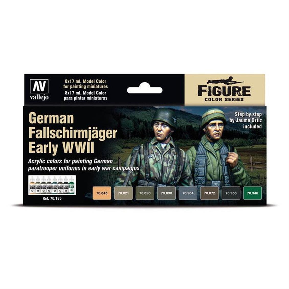 Vallejo 70185 8x17 ml. German Fallschirmjäger Early WWII, By Jaume Ortiz, Model Color Series Model Paint Set