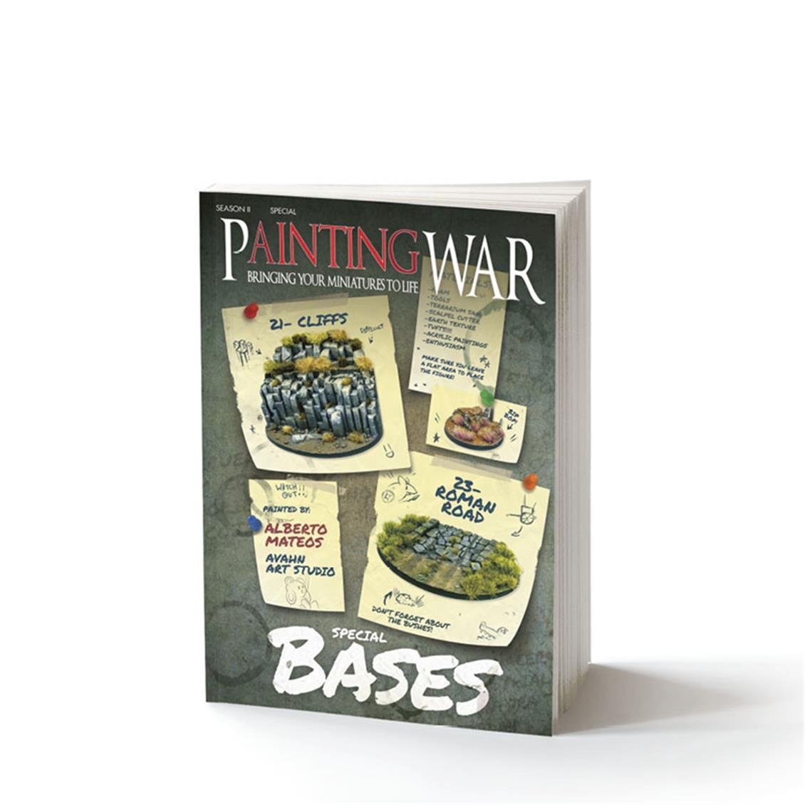 In this issue of Painting WAR magazine, renowned painter Alberto Mateos Jurado of Avahn Art Studio shares different techniques focusing on base making for wargaming. This issue presents construction and painting techniques that can be used on different themed floors such as science fiction, fantasy and history. Each base is sorted by difficulty level; This helps the reader determine its complexity before starting the painting process. There may also be some techniques for creating a base quickly and easily; This allows the modeler to achieve extraordinary results in a short time.
