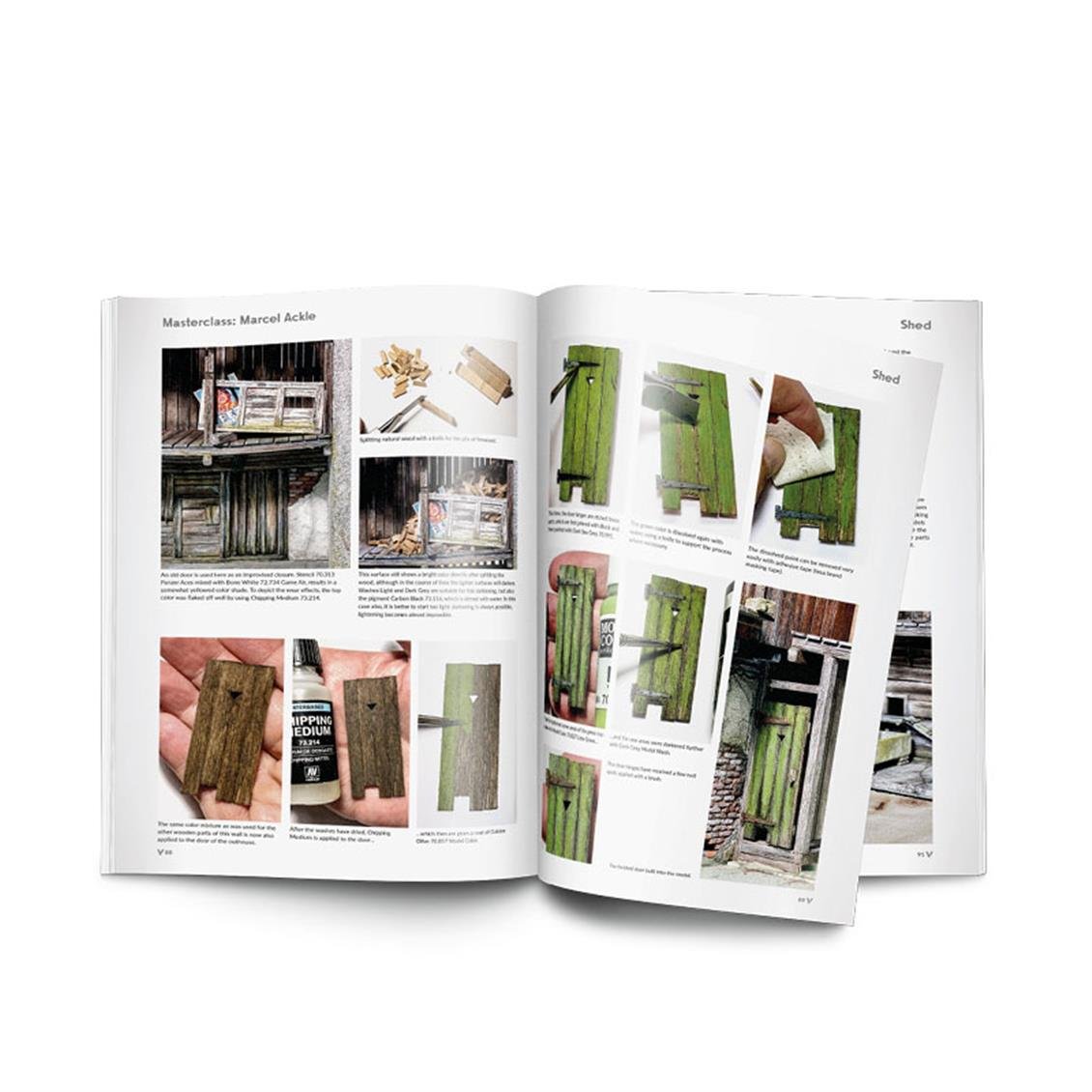 A new book from the Scenic Atmosphere publishing series, in which famous artist Marcel Ackle shares the methods and techniques he uses in diorama making. The second volume of this Master Class series, in which the author reveals a personal perspective on how he approaches and executes his work, examines the processes of planning, building and painting different small scenes that, when brought together, form a complete diorama. Marcel Ackle takes us on a creative journey into the fascinating world of diorama making. By creating a scene based on an old rural building, he demonstrates his step-by-step working method and the different techniques he has perfected over the years. Over the course of 14 chapters, the author reveals both construction and painting techniques and describes in detail the diorama's planning and design process. The author shows how to build and paint accessory elements made of brick, plaster, wood, vegetation and different materials; We are also exploring specific techniques to simulate the passage of time and the impact of natural events on each of these materials.