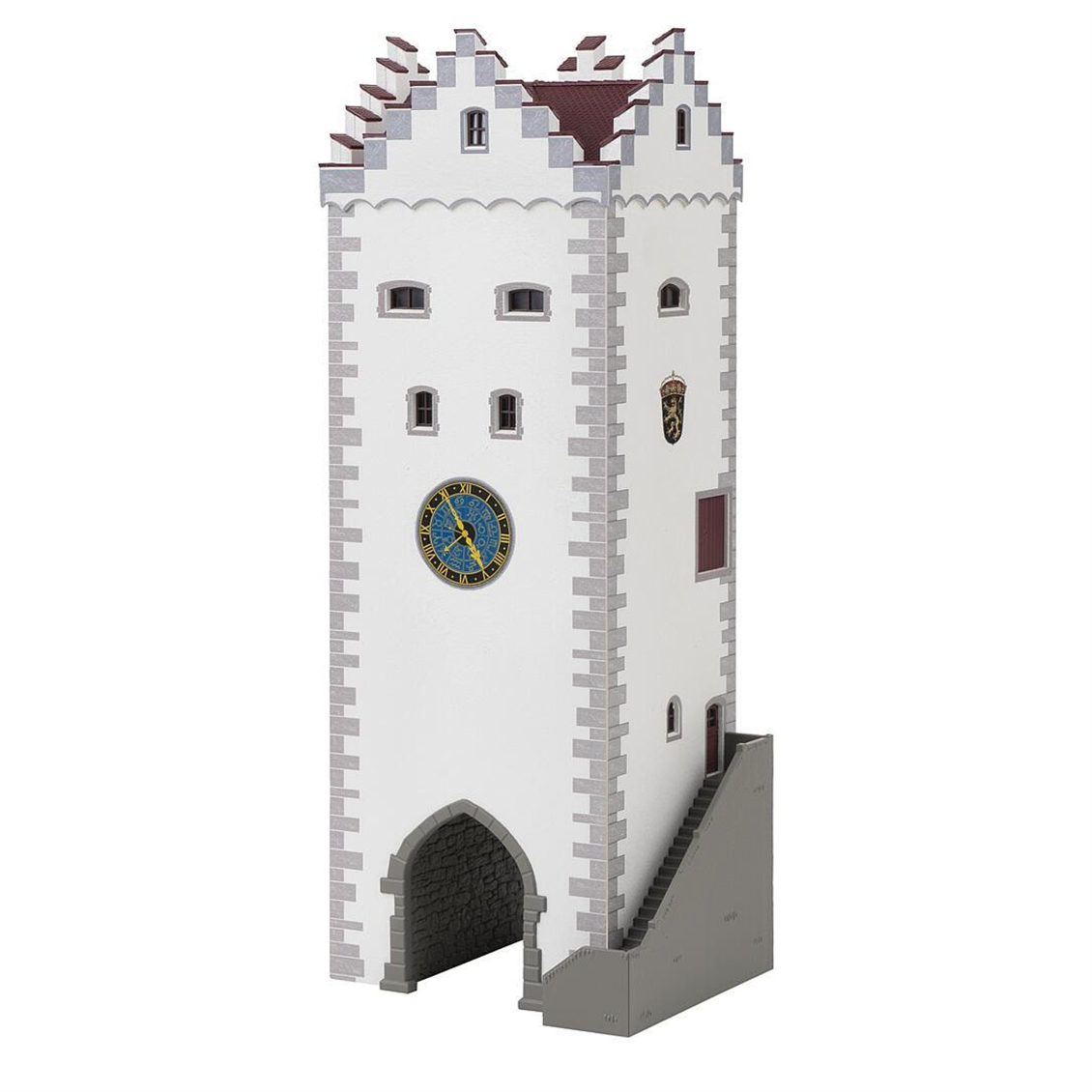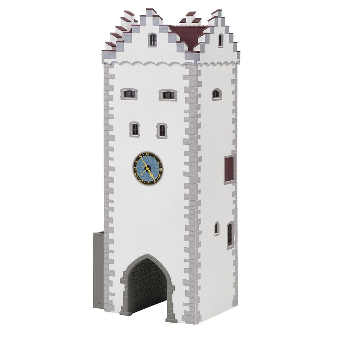 Medieval clock tower model kit, inspired by the seal tower in Diessenhofen, Swiss canton of Thurgau. This building kit is perfect for hobbyists who want to create a unique and detailed model of a medieval clock tower. With its large archway passage, side staircase, prominent cornerstones and four stepped gables, this model is sure to impress. Ürün: Faller 130824 1/87 Ölçek, Saat Kulesi, Plastik Model Kiti