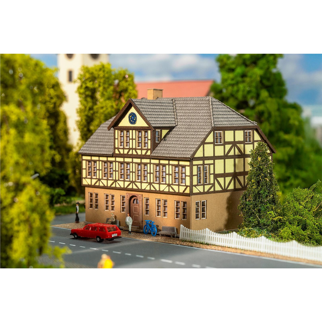 İçindekiler: Eski kasaba holü, yarı ahşap elemanları ve sarı kahverengi dış cephesiyle, herhangi bir diorama'ya köy karakterini getirir. Çeşitli pencereler, binaya davetkar bir görünüm verirken, gri tuğla çatı, görünümden tamamlar. Model layout'ında göz alıcı bir öğedir!