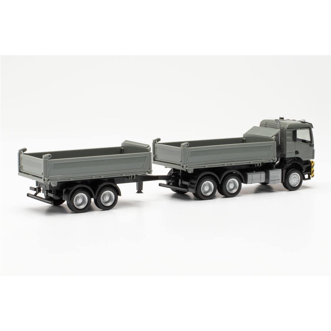 Herpa 316255 1/87 Ölçek, MAN TGS NN Damperli Kamyon ve Damperli Römorku, Gri/Sarı