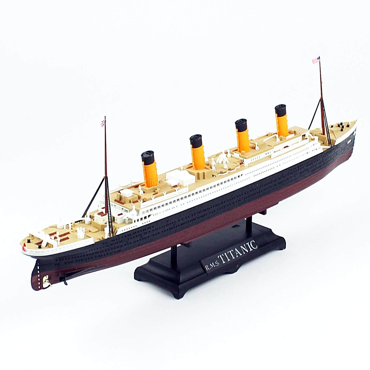 38 cm uzunluğuyla dikkat çeken bu model, "ne çok büyük ne çok küçük" dengesini tam merkezinden yakalıyor. 1/700 ölçeği sayesinde geminin o meşhur bacalarından güverte detaylarına kadar her şey aslına sadık kalınarak işlenmiş. Kitaplığınızda veya ofis masanızda devasa bir yer kaplamadan, tüm bakışları üzerine çekmeyi başarıyor. Sergilemeye Hazır Modelcilikle uğraşmak keyiflidir ama bazen o karmaşık boyama ve yapıştırma süreçlerine ayıracak vaktimiz olmaz. QD403, sergilemeye hazır yapısıyla sizi zahmetten kurtarıyor. Kutudan çıktığı andan itibaren o ikonik siyah-beyaz gövdesi ve ahşap görünümlü güvertesiyle sergilenmeye uygun bir estetik sunuyor.