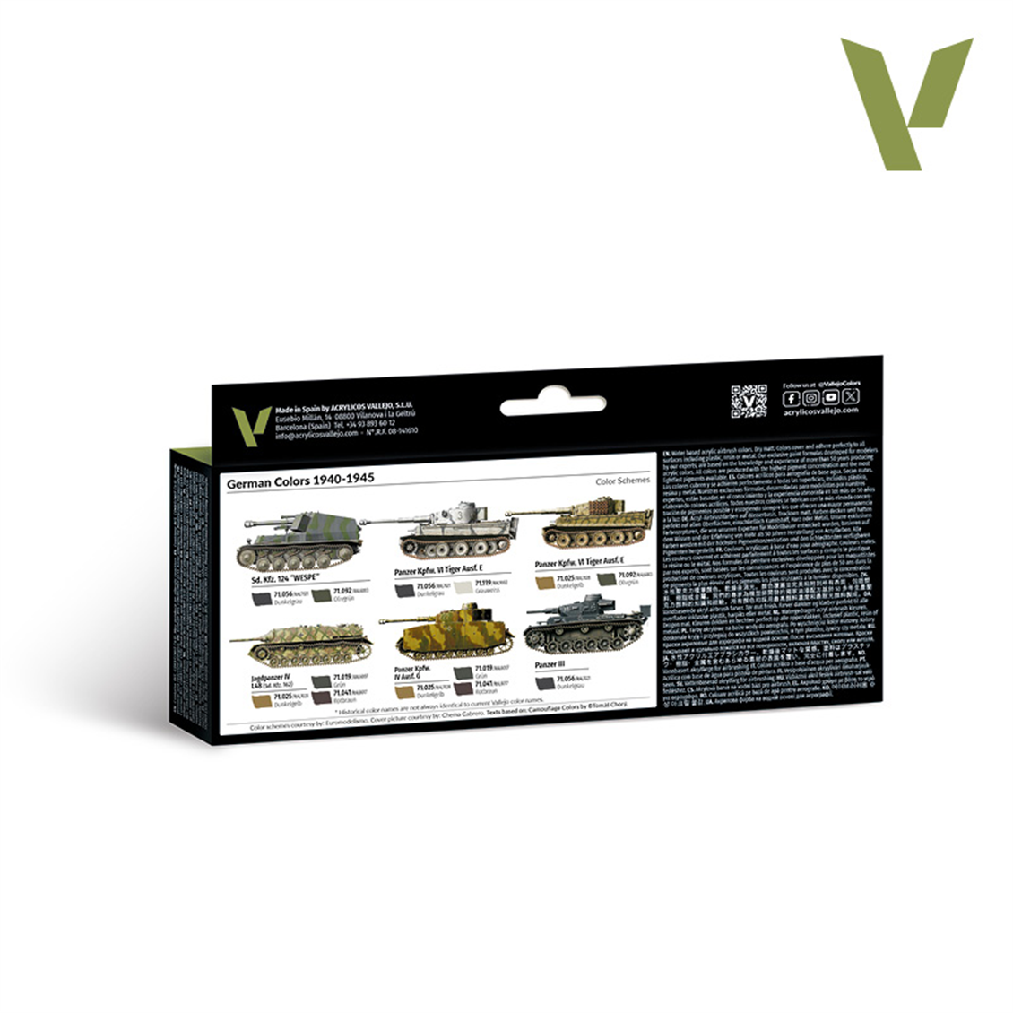 Vallejo 71206 8x18 ml. German Colors 1927-1941, Model Air Serisi Model Boyası Seti, hobi amaçlı kullanım alanlarını ve boya/modelcilere faydalarını sunar. Bu set, Alman araçlarını 1940-1945 yılları arasında boyama için kullanılan renkleri içerir. Bu renkler, detaylı boyama işlemlerinde kullanılır ve hobi amaçlı modellere gerçekçi bir görünüm kazandırır.