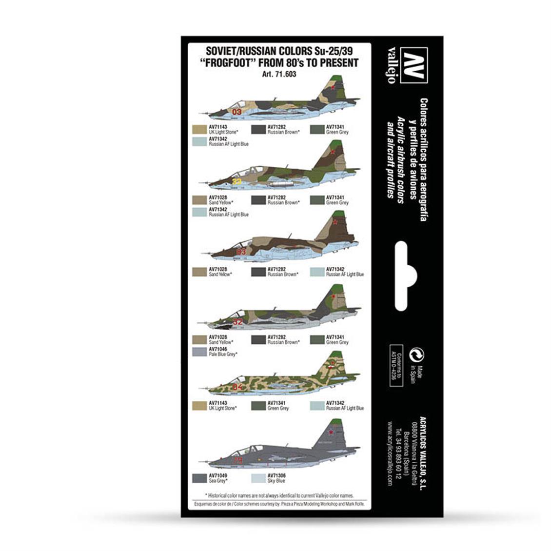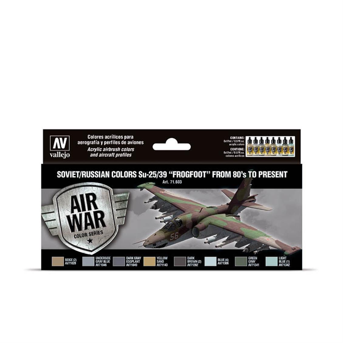 Vallejo 71603 8x18 ml. Soviet/Russian Colors Su25/39 Frogfoot from 80's to present, Model Air Serisi Model Boyası Seti.