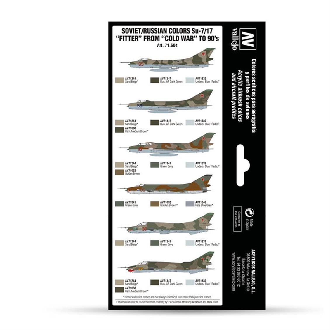 Model Air tarafından geliştirilen ve Soğuk Savaş döneminde Sovyet Hava Kuvvetleri'nin Sukhoi Su-7 "Fitter" ve geliştirilmiş Su-17 modellerini boyamak için kullanılan boyaları içeren bir set. Set, uçakların profillerini, gerekli renklerin gösterimini ve uygulama yöntemlerinin ayrıntılı bir açıklamasını içermektedir. İçerik: 8 x 17 ml./0.57 fl.oz. Model Air 71.032 Altın Kahverengi 71.038 Kamuflaj Orta Kahverengi 71.046 Açık Mavi Gri 71.244 Kum Beji 71.246 Sarı Kahverengi 71.332 Alt Taraf Mavisi “Soluk” 71.341 Yeşil Gri 71.347 Rus Hava Kuvvetleri Koyu Yeşil