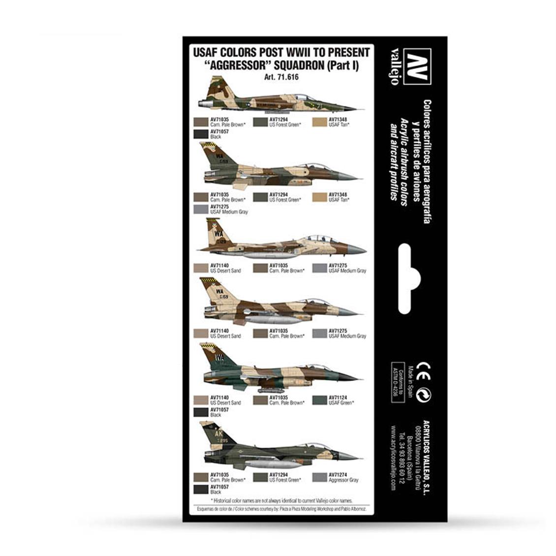 Model Air tarafından geliştirilen ve ABD Hava Kuvvetleri'nin "Aggressor" filoları için kullanılan, ağırlıklı olarak kahverengi ve yeşil renklerin yer aldığı kamuflaj desenlerini boyamak için tasarlanmış boyalarla birlikte sunulmaktadır. Set, en dikkat çekici olanları 2017 ve 2018 yıllarındaki "Red Flag" tatbikatlarında kullanılan altı farklı kamuflaj modelini içermektedir. İçerik: 8 x 17 ml./0.57 fl.oz. Model Air 71.348 ABD Hava Kuvvetleri Bej 71.035 Açık Kahverengi Kamuflaj 71.294 ABD Orman Yeşili 71.140 ABD Çöl Kumu 71.124 ABD Hava Kuvvetleri Yeşili 71.274 Saldırgan Gri 71.275 ABD Hava Kuvvetleri Orta Gri 71.057 Siyah